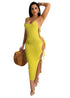 European And American Women's Clothing One-side Self-tie Slit Dress